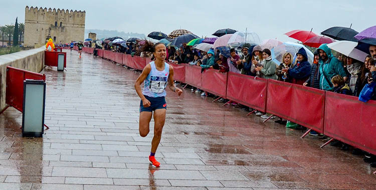 Pasada por agua, como en 2018. Así discurrió la 39ª edición de la Media Maratón de Córdoba, que emuló a la prueba de hace siete años con la mejor inscripción desde entonces cuando se estableció la mejor de su historia (el récord es de 8.750) y por la presencia de la lluvia. Esa circunstancia provocó que de los 7.750 dorsales vendidos, los últimos 250 extras en la última semana de sep